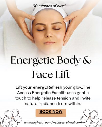 An Access Energetic Facelift session is a gentle, nurturing experience that helps rejuvenate your face and refresh your entire being. Through light, soothing touch on the face, neck, and décolletage, this process invites your body to release tension, soften energetic blocks, and unwind patterns that contribute to stress and aging.